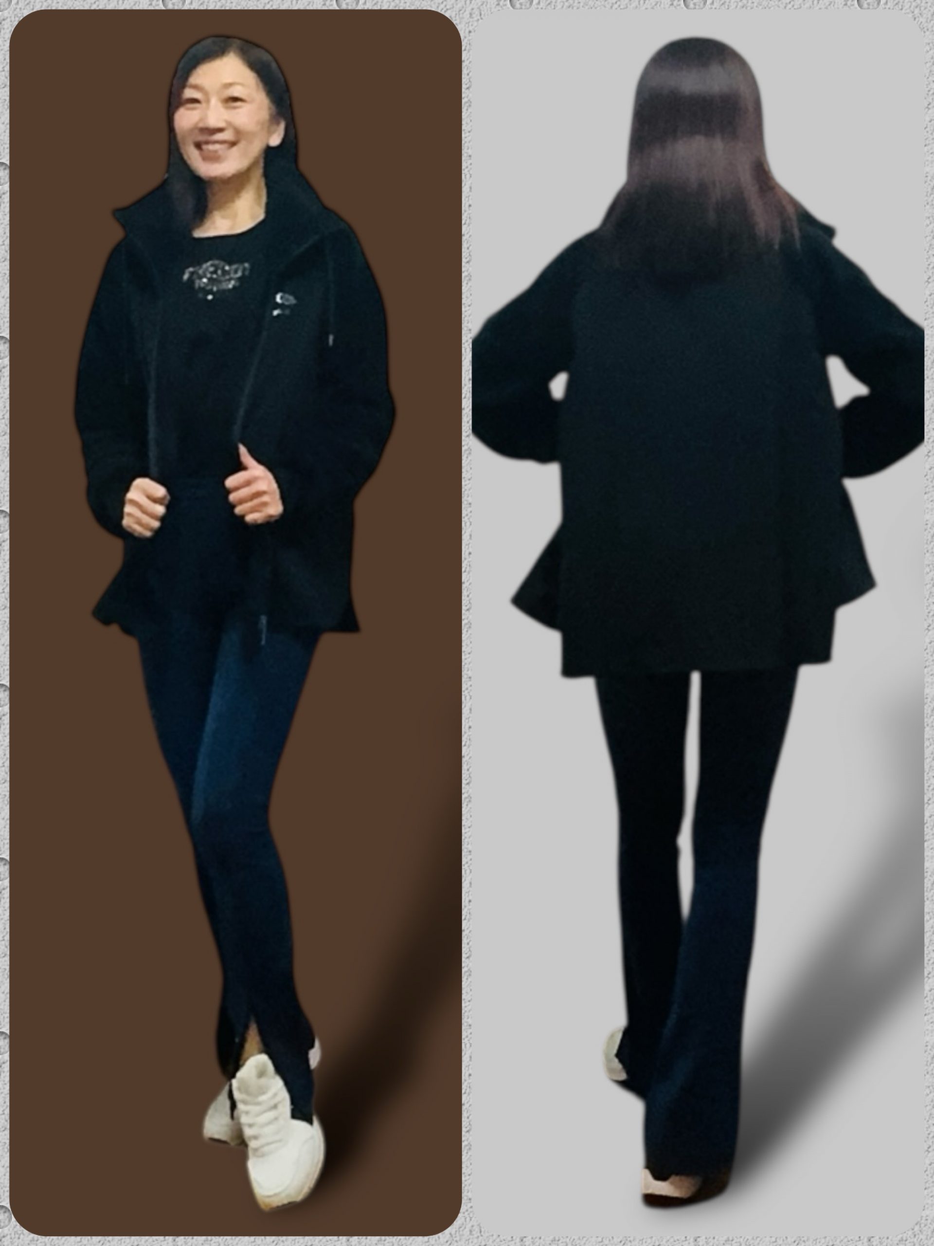 お尻ギリギリ上ラインでFake Hip up😆凄く軽くて薄いのに暖かモフモフ袖